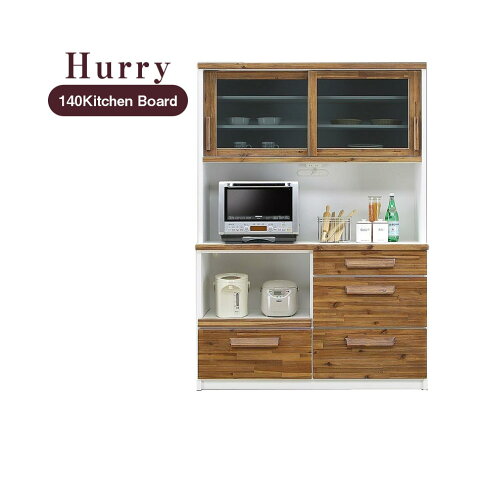 {組立設置無料} 食器棚 幅140 ダイニングボード キッチン収納 キッチンラック アカシア ホワイト 白 ブラウン 木目 スモークガラス 北欧 カントリー 引き戸 キャビネット キッチンカウンター カップボード 収納 棚 木