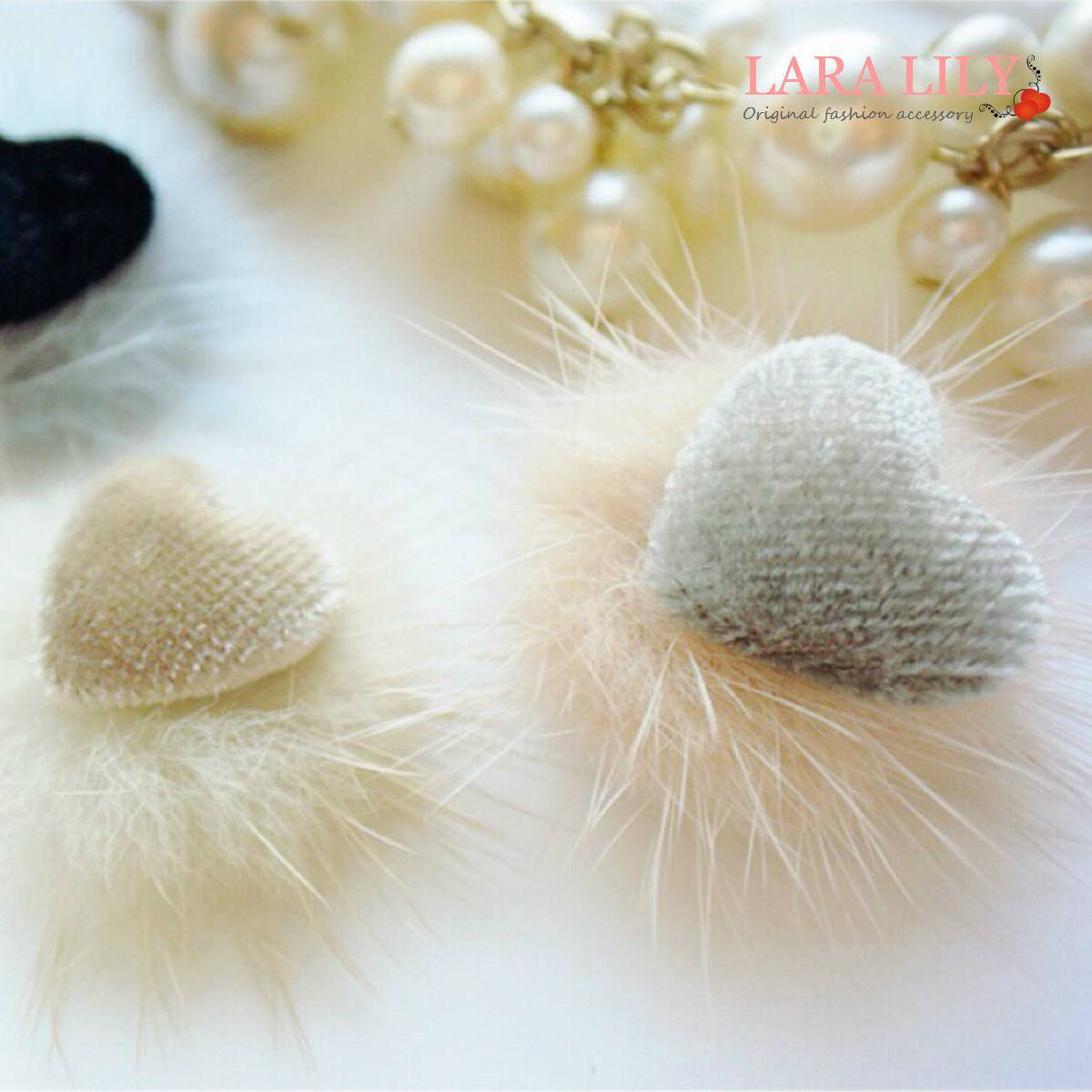 ピアス 樹脂イヤリング ファー ハート ベルベット おしゃれ かわいい レディース 金属アレルギー対応 秋 冬 チタンピアス 樹脂ノンホールピアス スタッド 13カラー 小ぶり amm