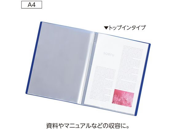 【仕様】●色:インディゴブルー●規格:A4●外寸法:縦306×横228×背幅8mm●材質:表紙/ポリプロピレン(生地厚0.5mm)、ポケット/ポリプロピレン(生地厚0.04mm)●ポケット数:10枚【備考】※メーカーの都合により、パッケージ・仕様等は予告なく変更になる場合がございます。