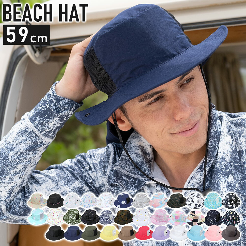 ビーチハット メンズ 向けサイズ サーフハット サファリハット 海 帽子 UV 熱中症 対策 プール サーフィン SUP 海水浴 頭周り59cm 夏フェス 日よけ ラッシュガードとコーデ キャップ